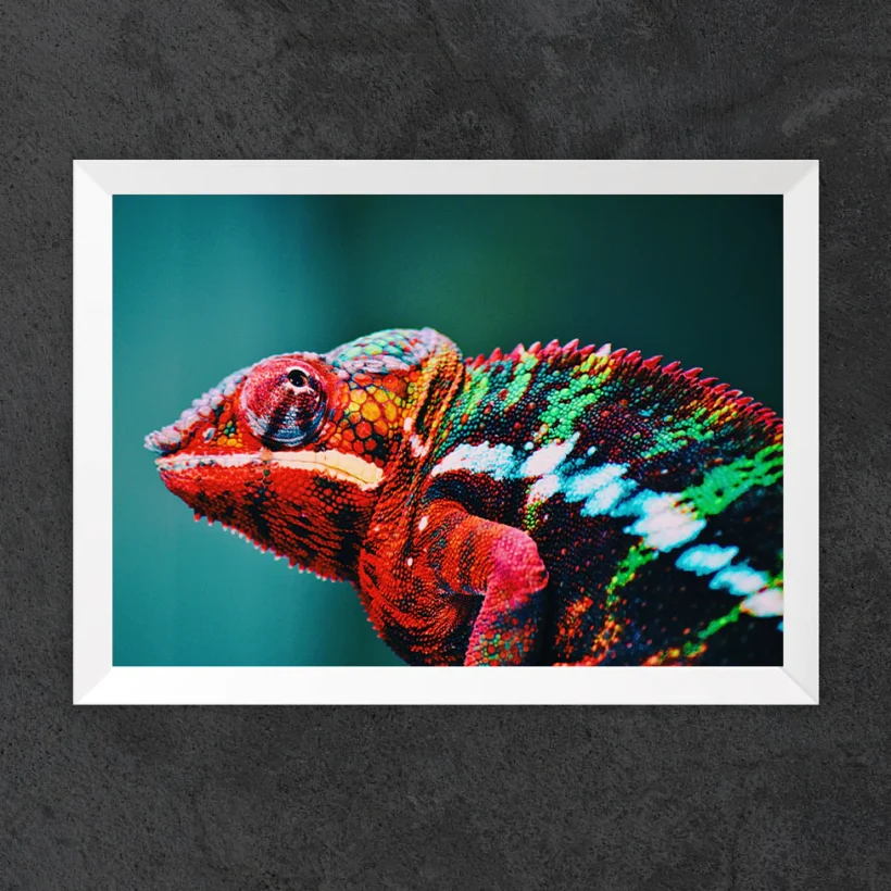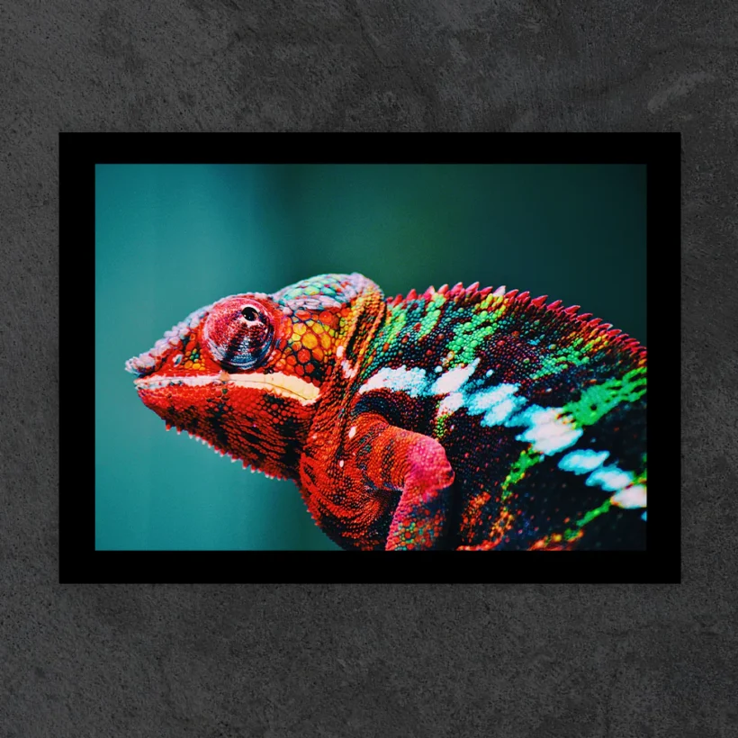 Quadro Decorativo Camaleão – Tamanho A3 (30x42cm) – Moldura 1,5-2cm.