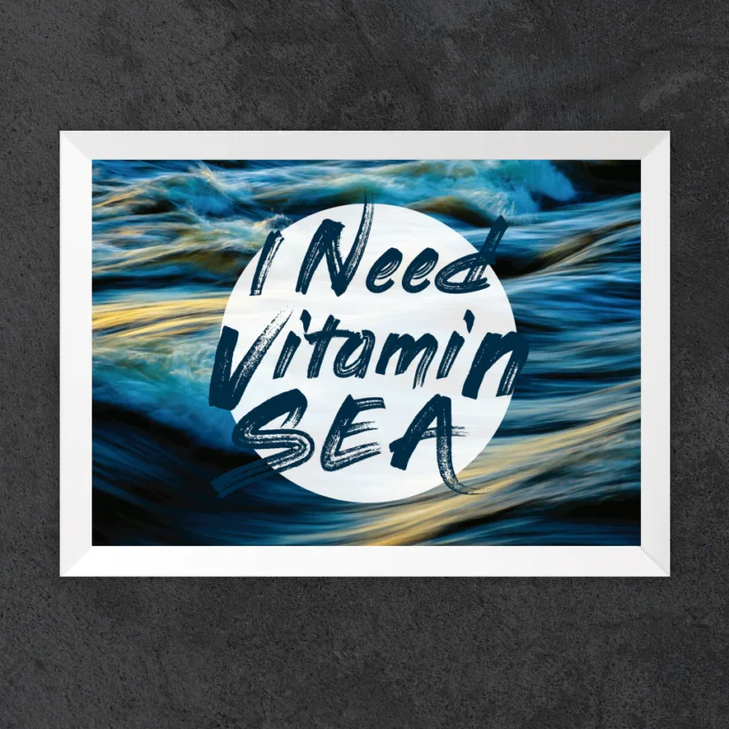 Quadro Inspirador I Need Vitamin Sea – Tamanho A3 (30x42cm) – Moldura 1,5-2cm.