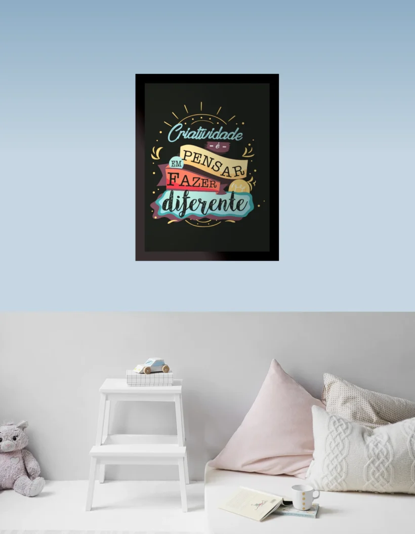 Quadro Motivacional Criatividade – Tamanho A3 (30x42cm) – Moldura 1,5-2cm.