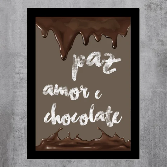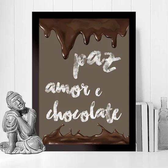 Quadro Inspirador Paz, Amor e Chocolate – Tamanho A3 (30x42cm)