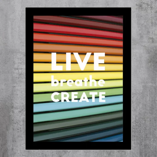 Quadro Motivacional Live, Breathe, Create – Tamanho A3 (30x42cm)